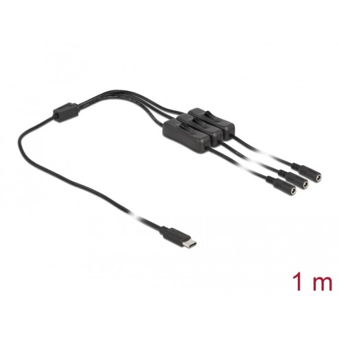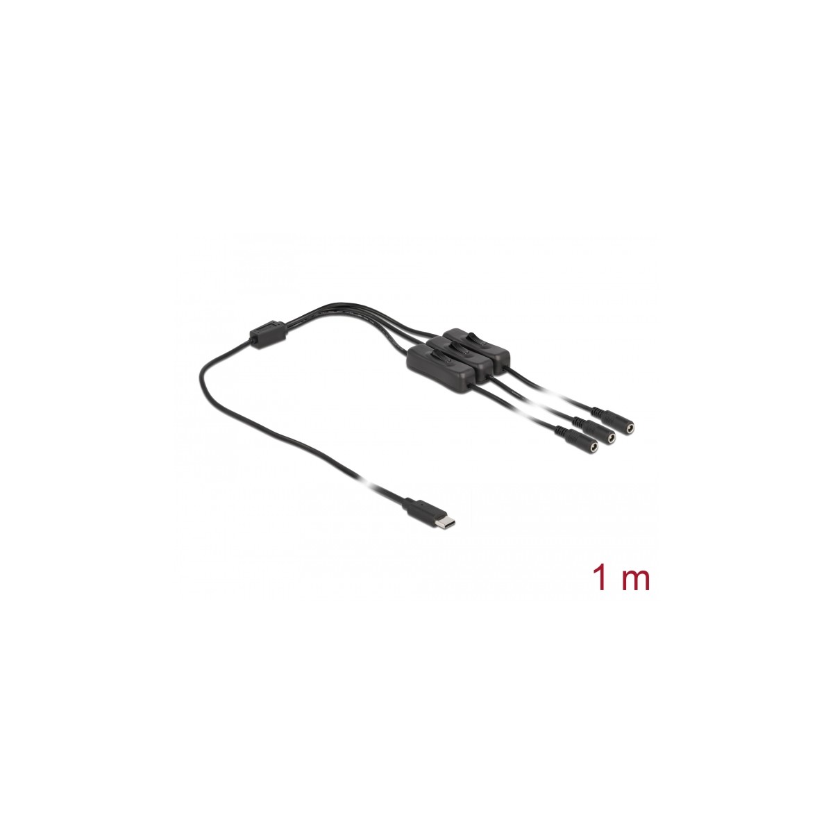 Delock Cable USB Type-C™ male to 3 x DC 5.5 x 2.1 mm female with switch 1 m
