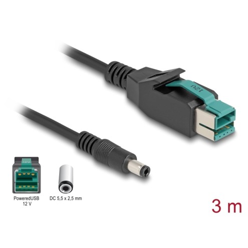 Delock PoweredUSB cable male 12 V to DC 5.5 x 2.5 mm male 3 m