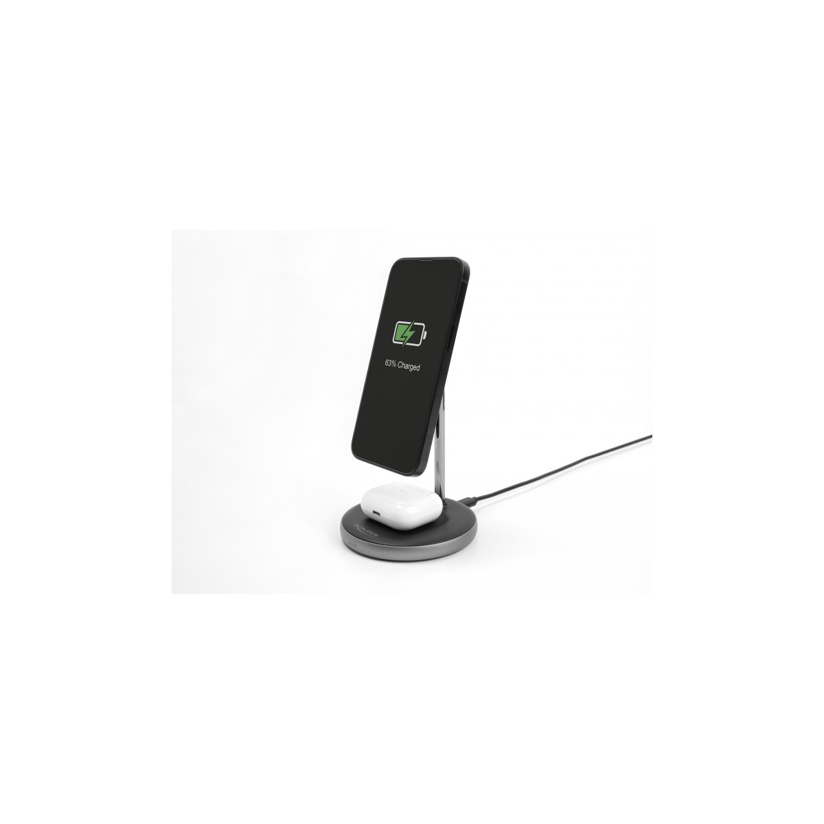 The charging pad in the base of the station provides power up to 5 W and is suitable for devices that support lower reading inductive charging. For example, wireless headphone cases.