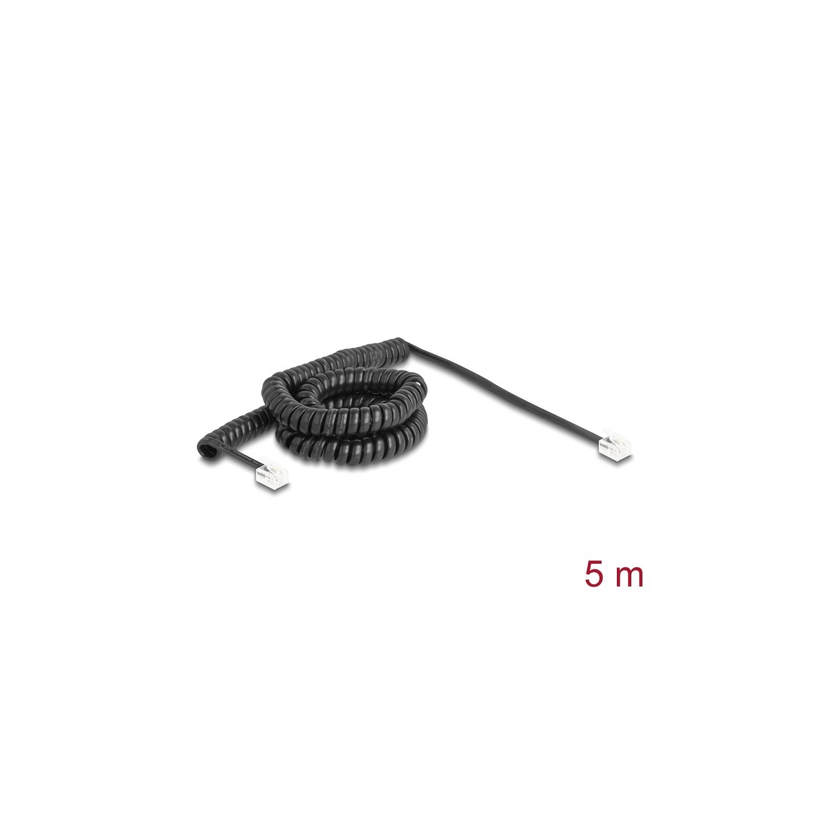 Delock Telephone Cable / Coiled Cable RJ11 plug to RJ11 plug black 5 m