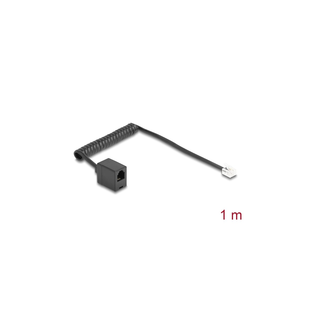 Delock Telephone Cable / Coiled Cable RJ11 plug to RJ11 jack black 1 m