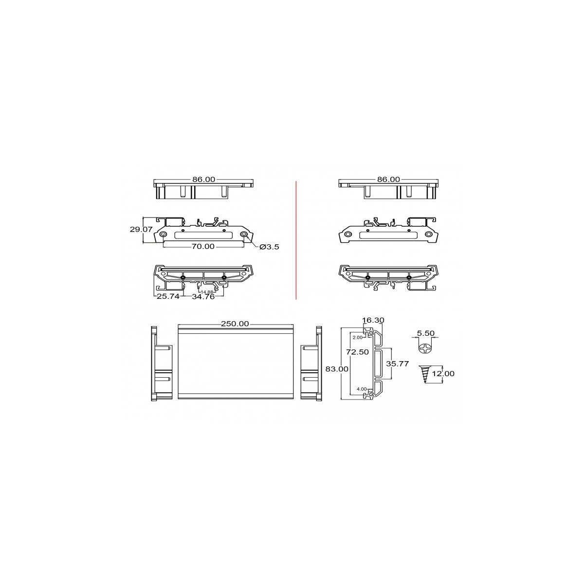 • Mounting hole diameter: 3.5 mm