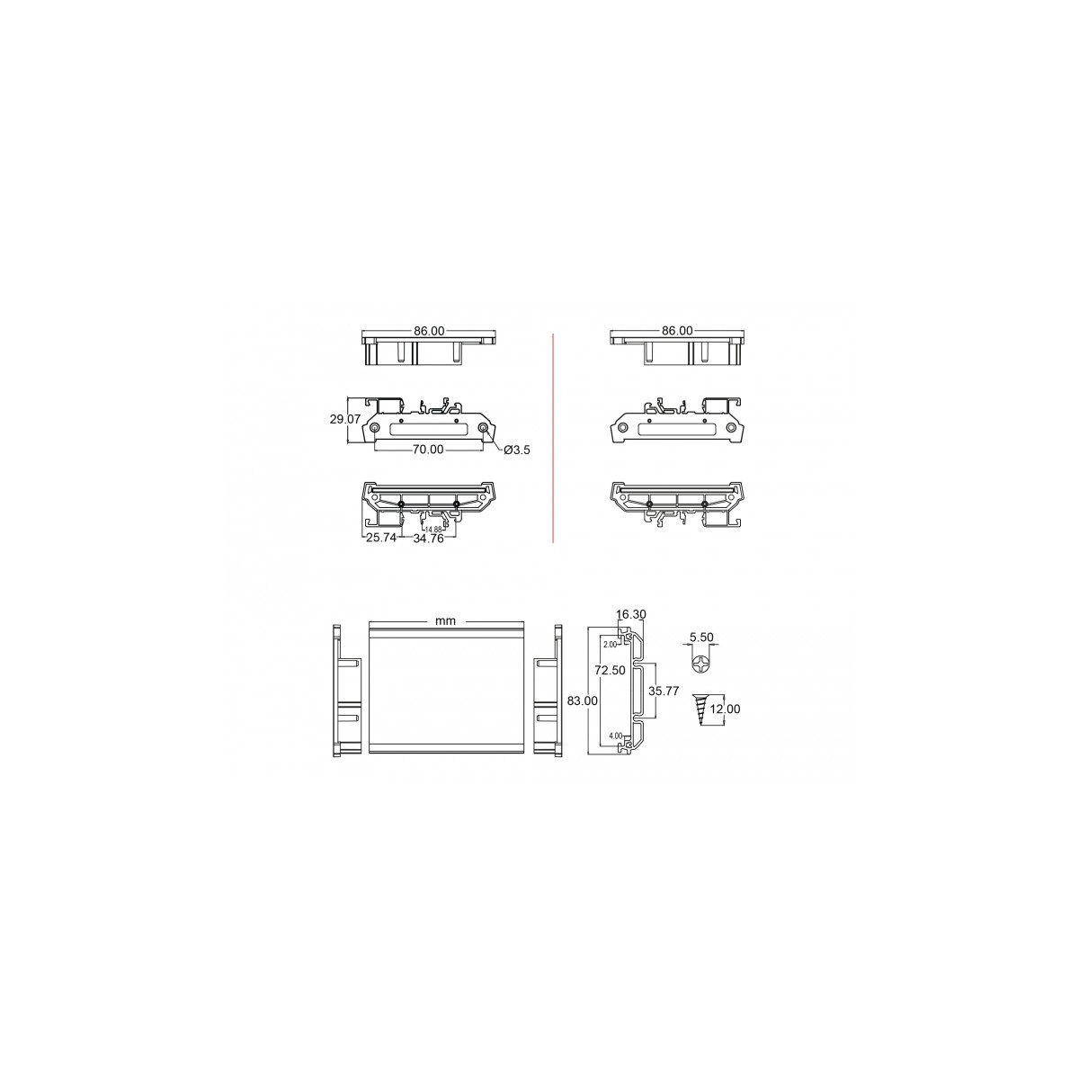 This DIN rail side panel can be mounted on a board holder with a width of 72 mm.