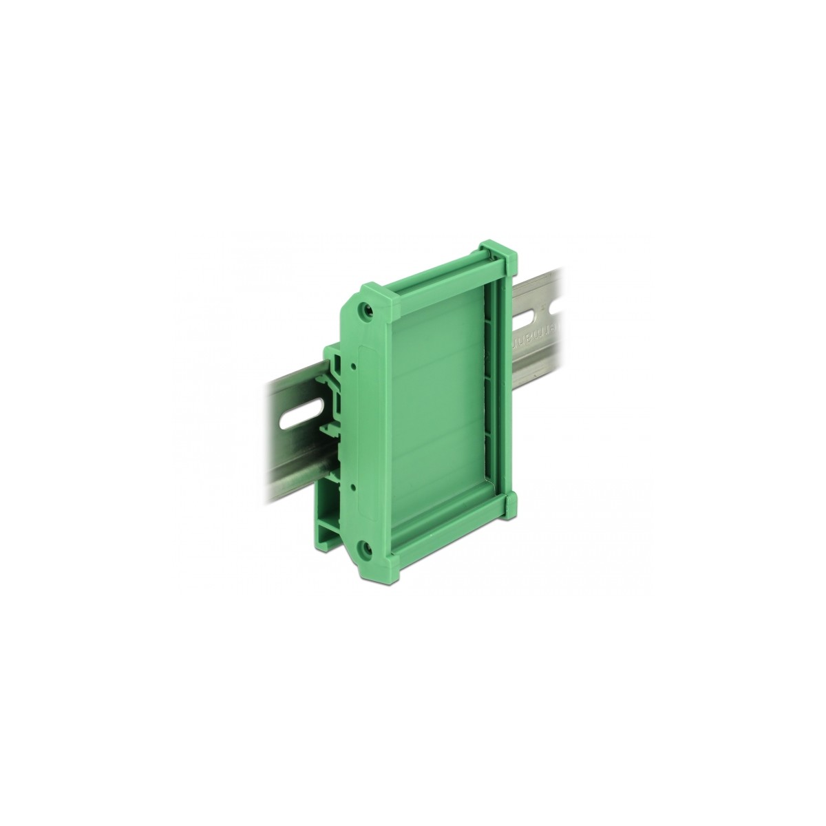 This board holder by Delock can be used to hold circuit boards with a width of 72 mm, to mount them on a 15 mm or 35 mm DIN rail. The board holder can be shortened individually in different lengths. After shortening, the two end caps can be put on again.