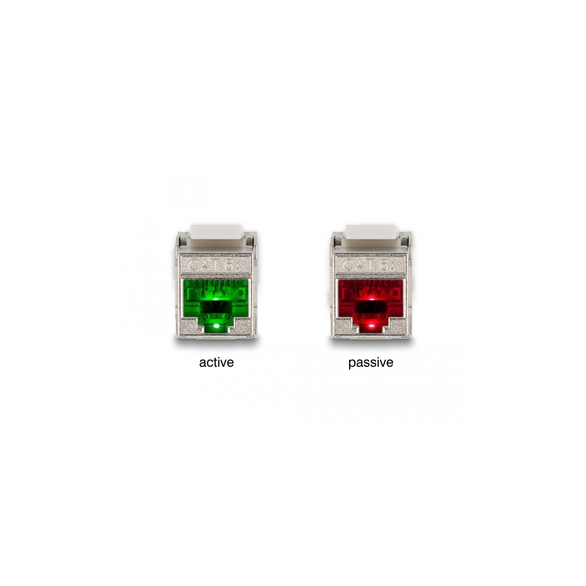 An LED is integrated into the Keystone module to make it easier to find the module in a patch panel by using a cable tester. Depending on the cable tester, the LED lights up green or red.