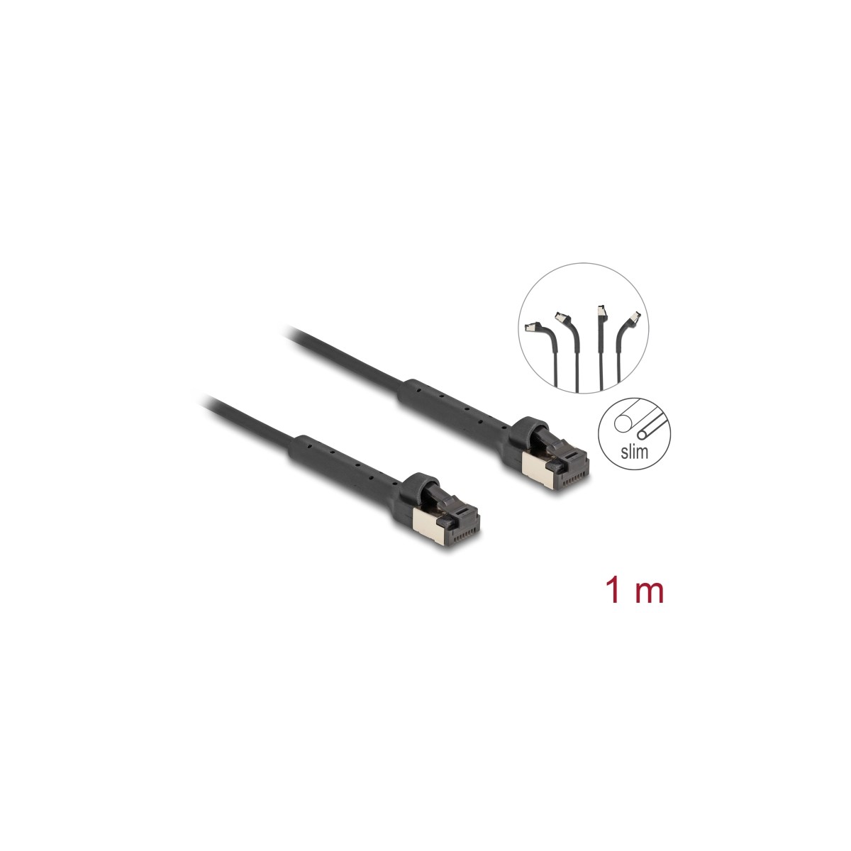Delock RJ45 Slim Network Cable Cat.8.1 U/FTP angled up to 40 Gbps black 1 m