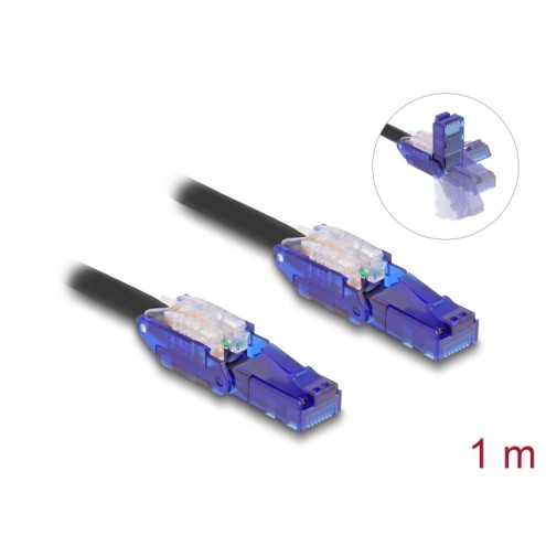 Delock RJ45 Network Cable Cat.6 UTP with 180° angled plugs black 1 m