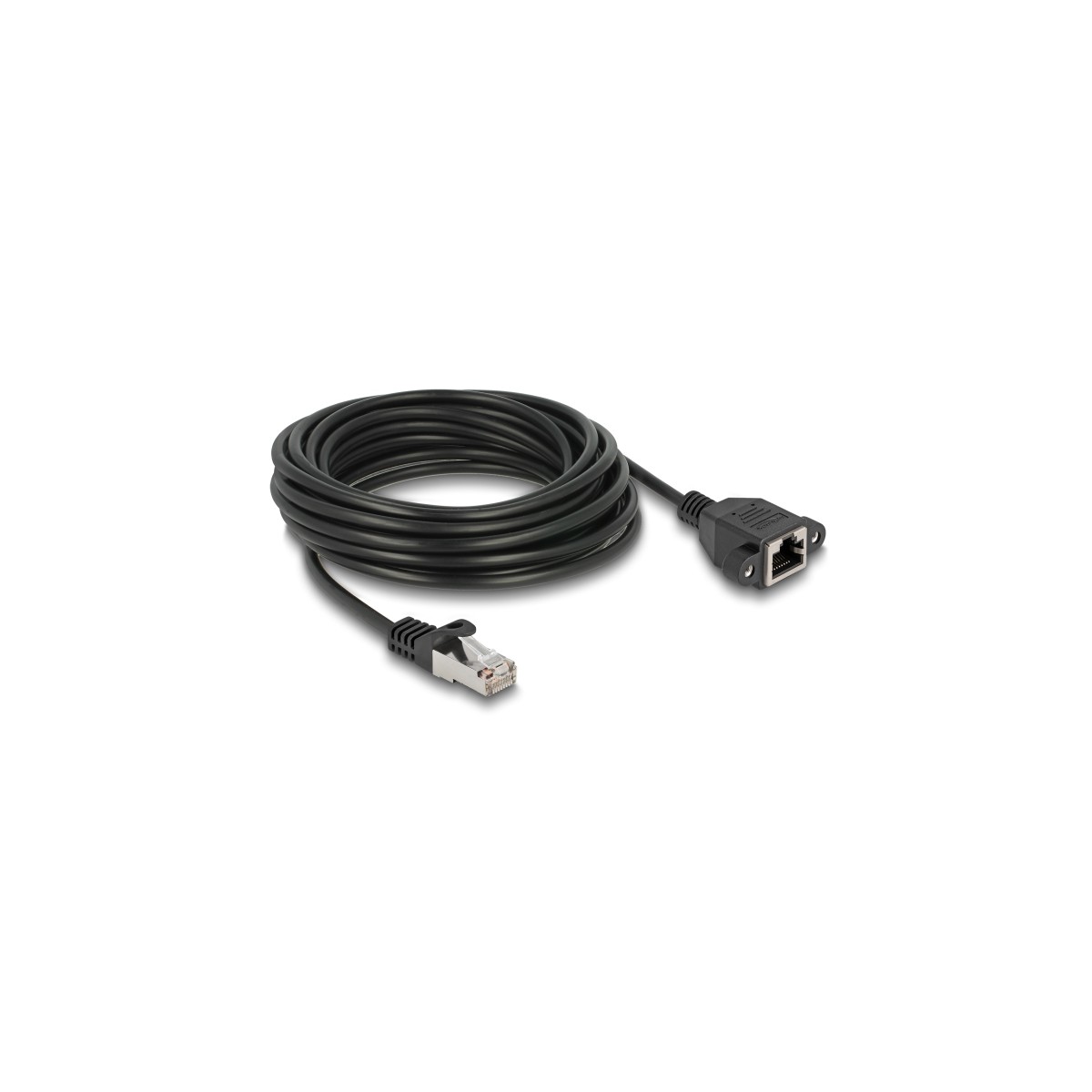 This network cable by Delock can be used to extend and connect various devices. The screwable RJ45 jack can be attached, for e.g., to a slot bracket or a housing with a suitable cut-out.
