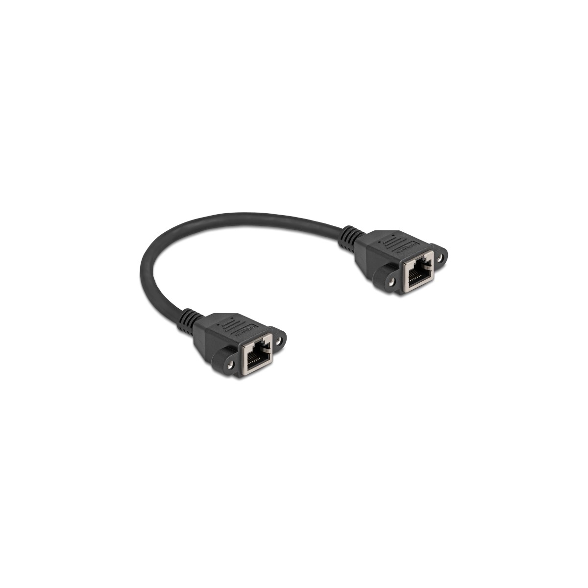 This network cable by Delock can be used to extend and connect various devices. The screwable RJ45 jack can be attached, for e.g., to a slot bracket or a housing with a suitable cut-out.