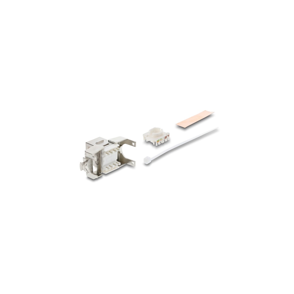 This module by Delock can be used to connect a network cable and is suitable for easy snap-in mounting in various holders, such as keystone patch panels, face plates or surface-mount boxes.