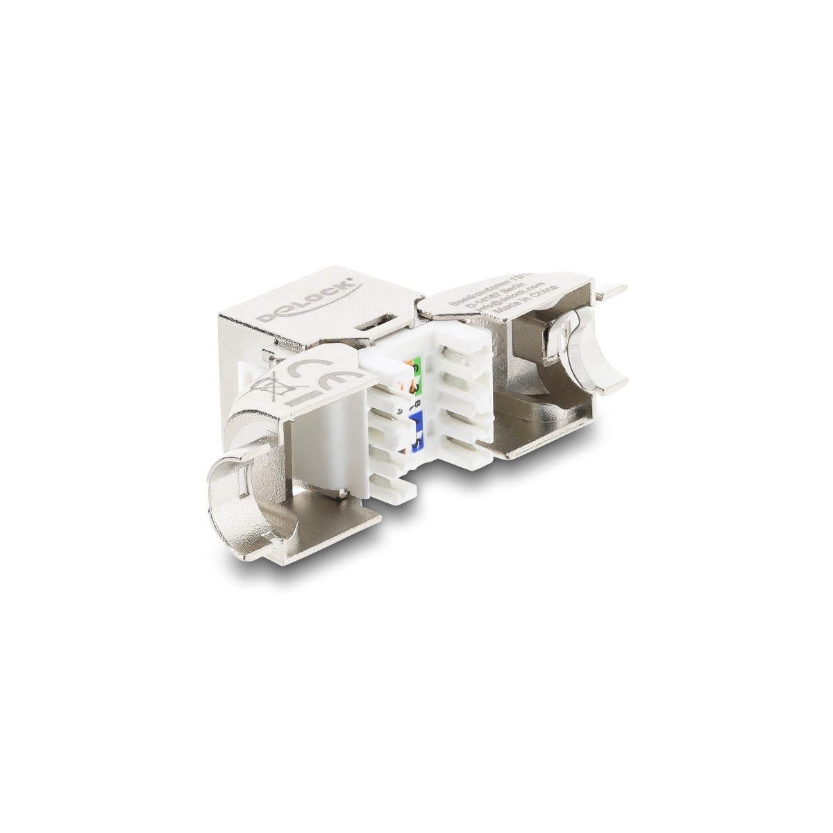 This module by Delock can be used to connect a network cable and is suitable for easy snap-in mounting in various holders, such as keystone patch panels, face plates or surface-mount boxes.