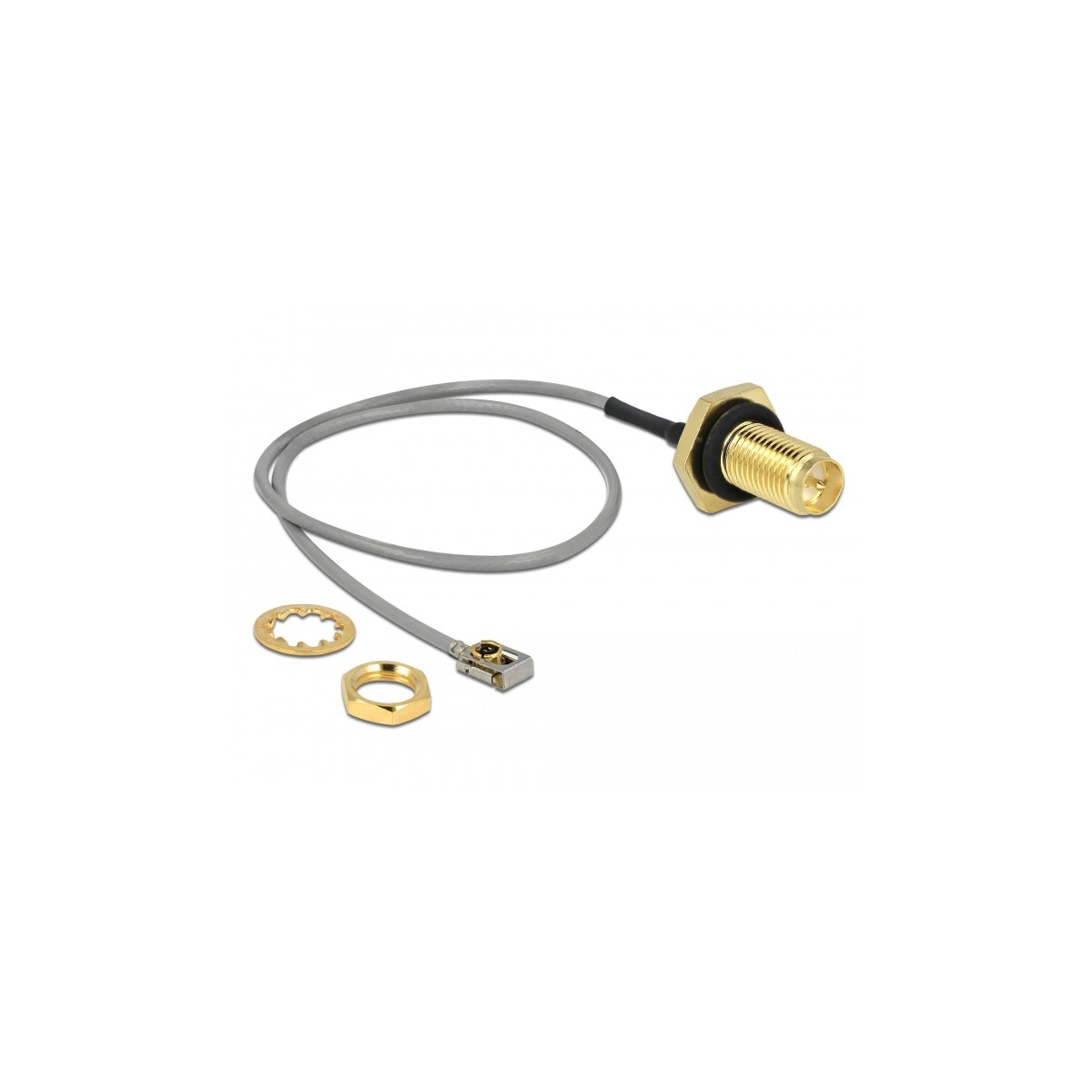 Delock Antenna Cable RP-SMA jack bulkhead to I-PEX Inc., MHF® I LK plug 1.13 20 cm thread length 10 mm splash proof