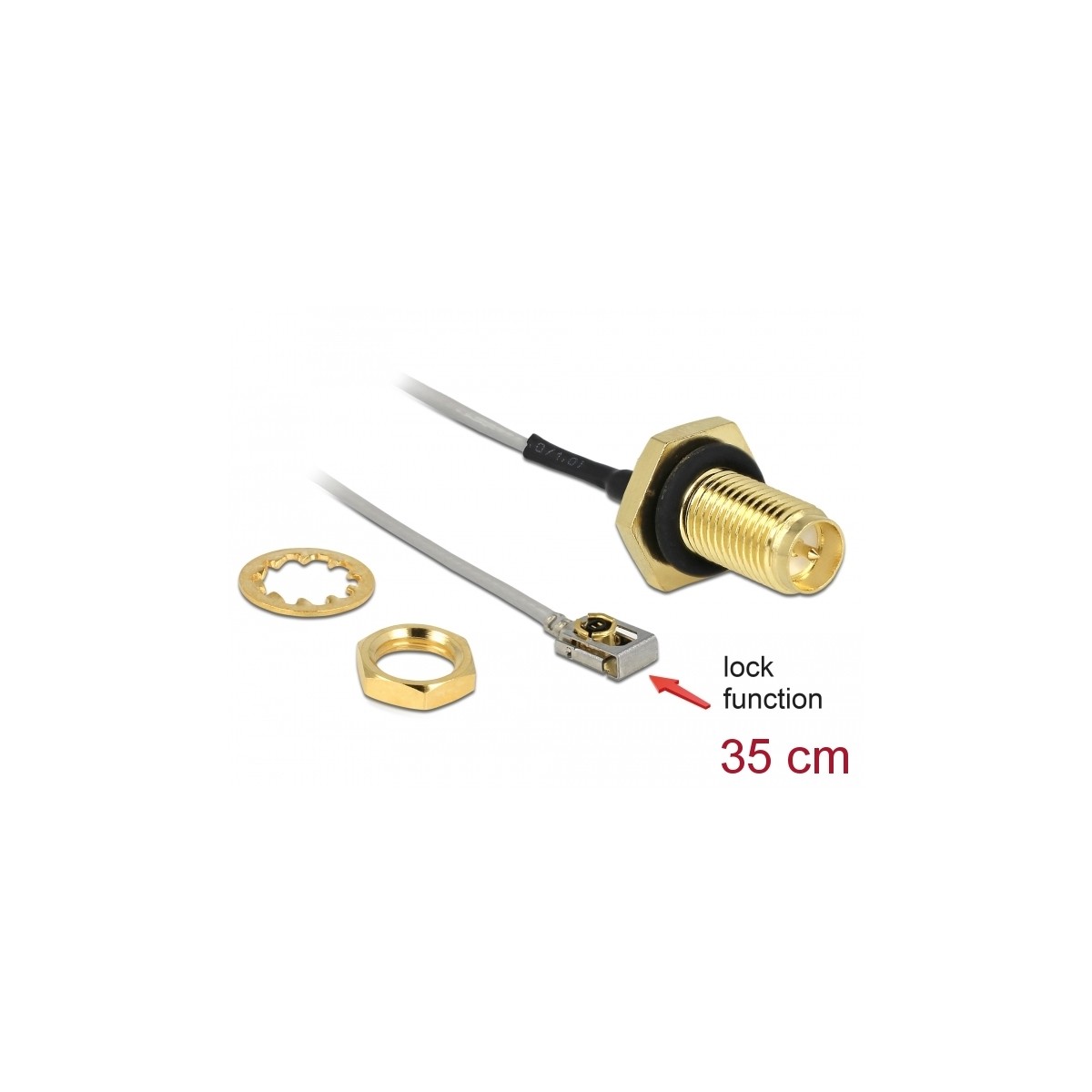 Delock Antenna Cable RP-SMA jack bulkhead to I-PEX Inc., MHF® I LK plug 1.13 35 cm thread length 10 mm splash proof
