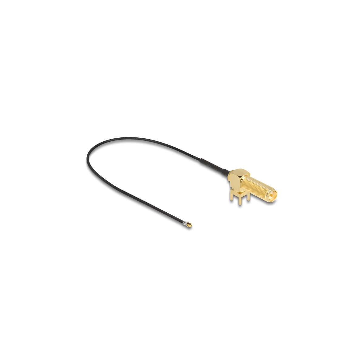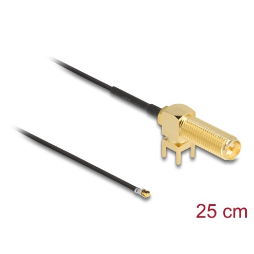 Delock Antenna Cable RP-SMA 90° PCB jack bulkhead to I-PEX Inc., MHF® 4L plug 1.13 25 cm thread length 15 mm
