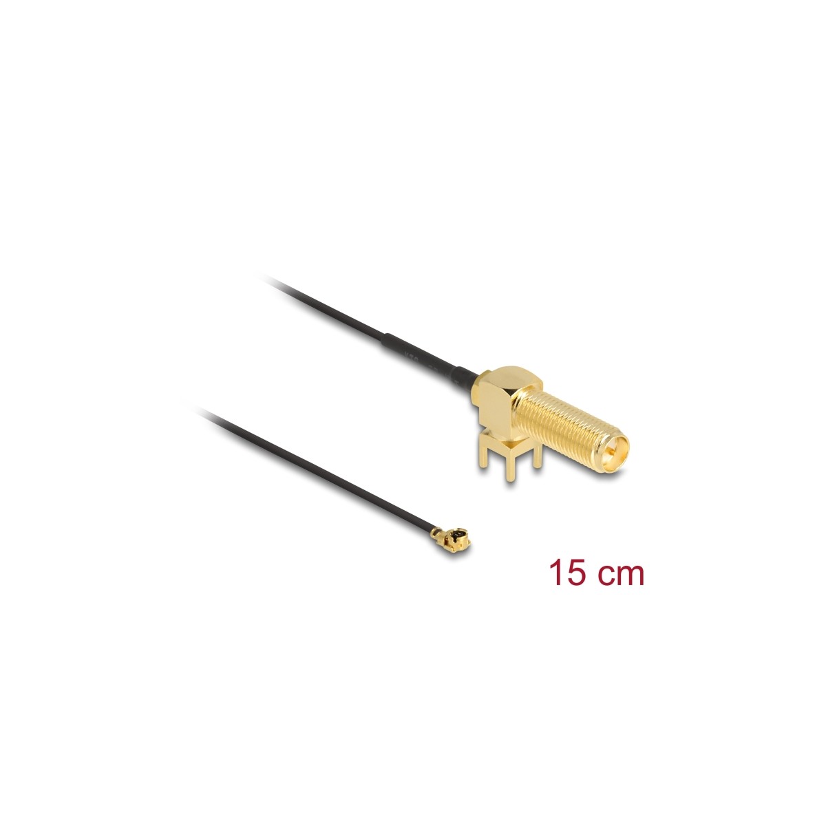 Delock Antenna Cable RP-SMA 90° PCB jack bulkhead to I-PEX Inc., MHF® I plug 1.13 15 cm thread length 15 mm