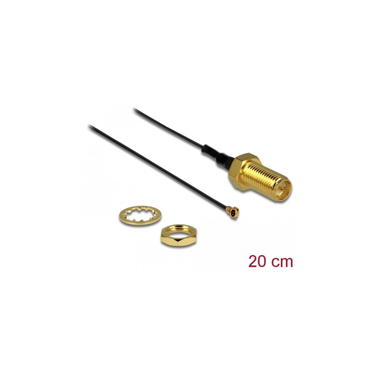 Delock Antenna Cable RP-SMA jack bulkhead to I-PEX Inc., MHF® 4 plug 0.81 20 cm thread length 10 mm