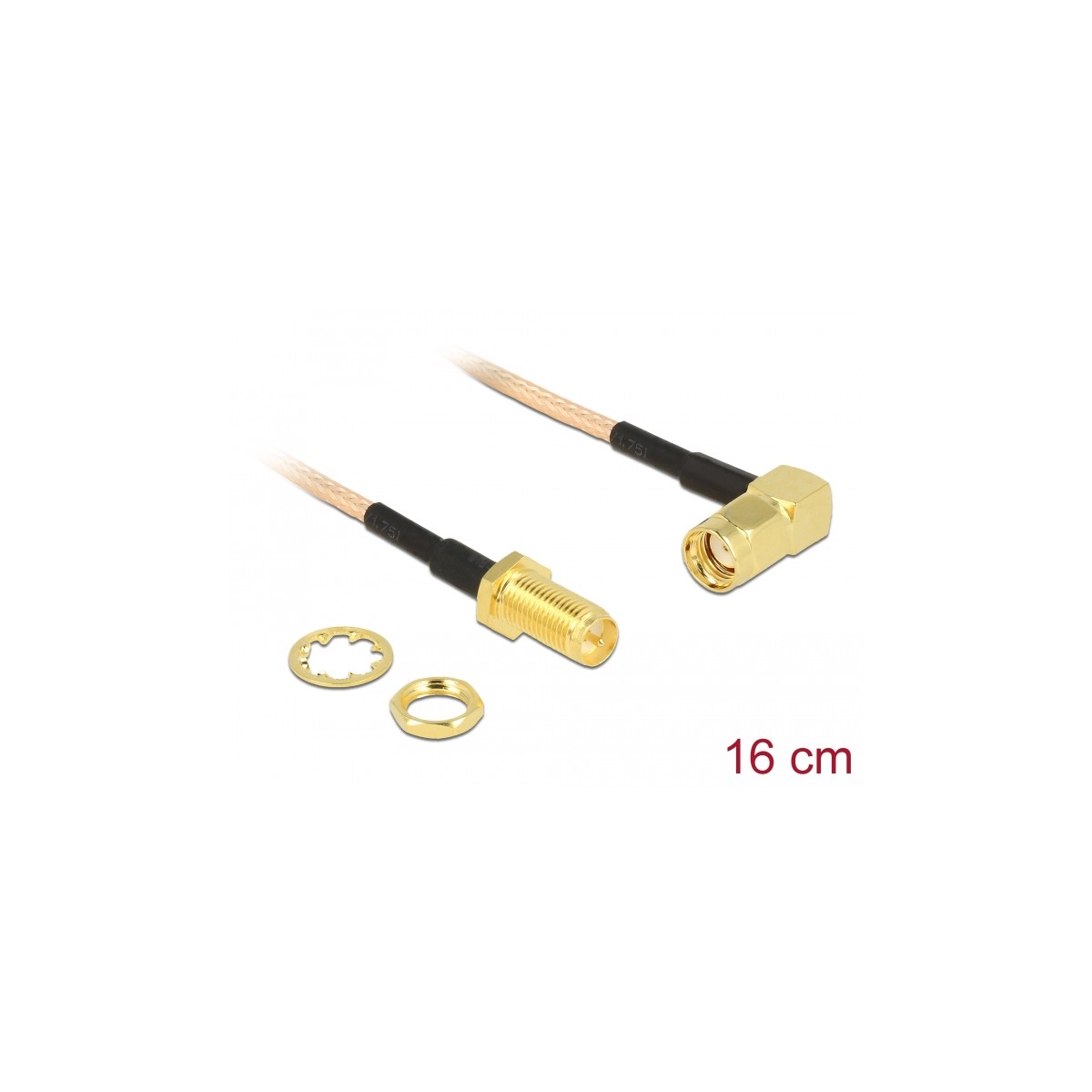 Delock Antenna Cable RP-SMA plug 90° RP-SMA jack bulkhead RG-316 16 cm