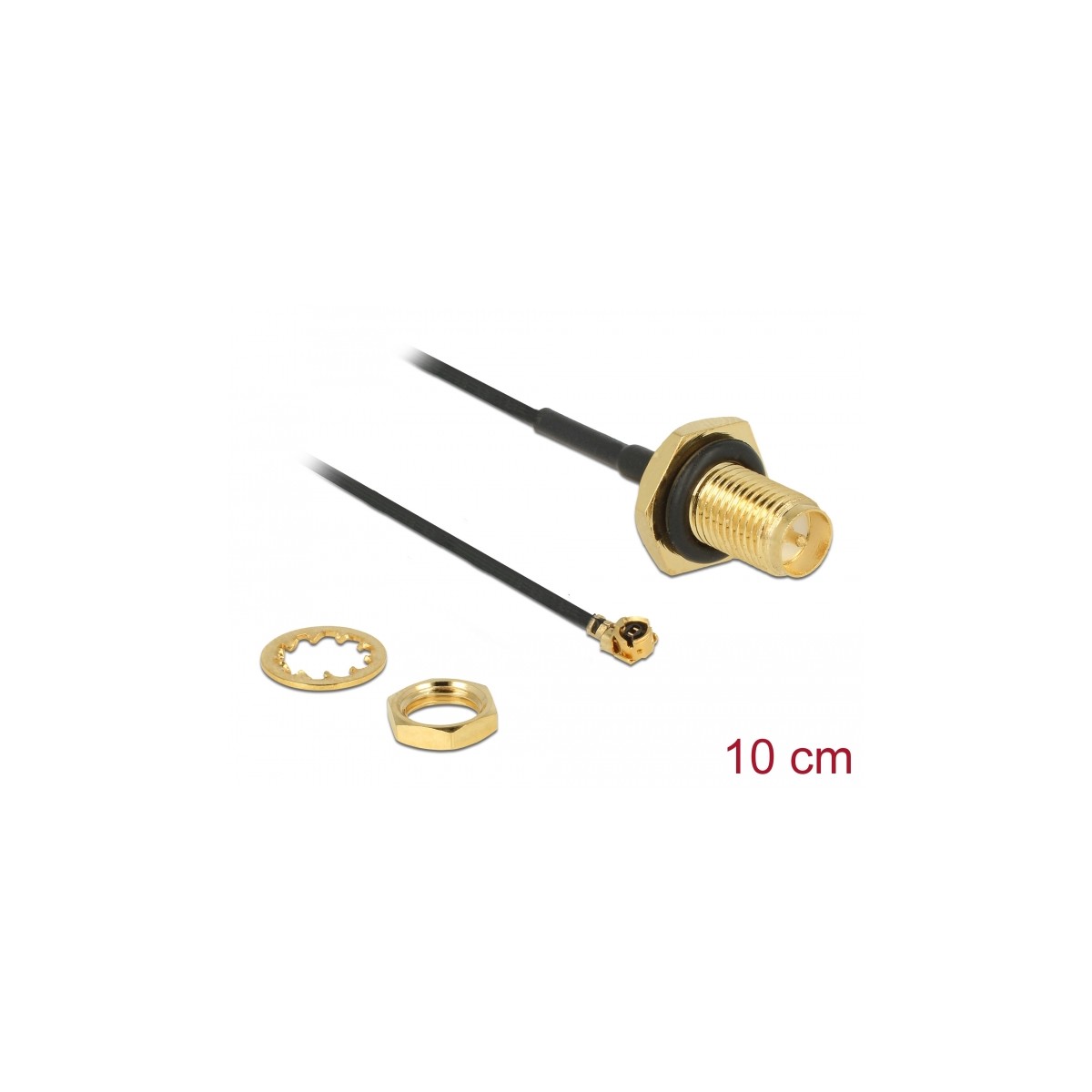 Delock Antenna Cable RP-SMA jack bulkhead to I-PEX Inc., MHF® I plug 1.13 10 cm thread length 9 mm splash proof