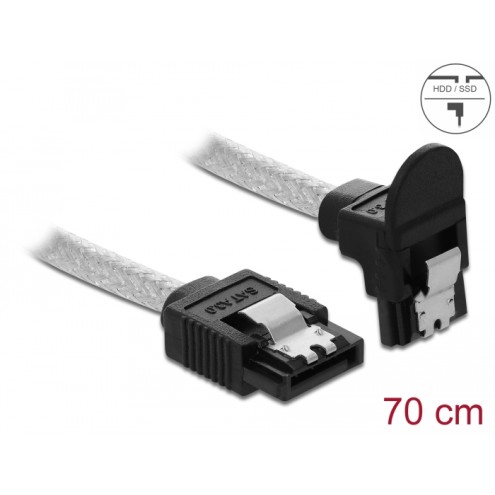 Delock SATA 6 Gb/s Cable straight to downwards angled 70 cm transparent