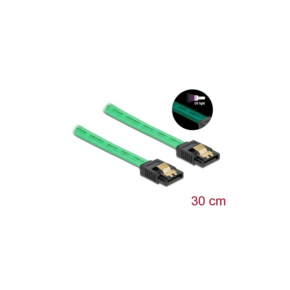 Delock SATA 6 Gb/s Cable UV glow effect green 30 cm