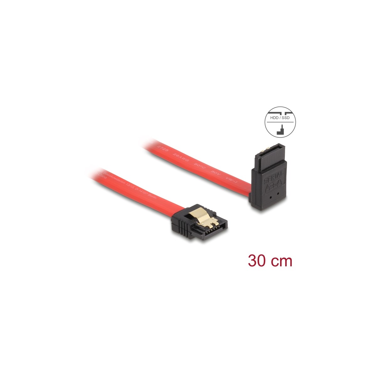 Delock SATA 6 Gb/s Cable straight to upwards angled 30 cm red