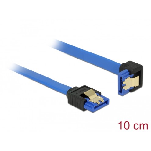 Delock Cable SATA 6 Gb/s receptacle straight SATA receptacle downwards angled 10 cm blue with gold clips