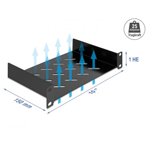 Delock 10″ 1U Shelf with ventilation slots up to 150 mm deep max. 25 kg load capacity