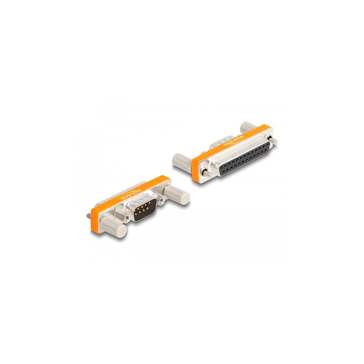 This narrow adapter by Delock can, for example, connect devices such as printers, modems and computers with serial RS-232 D-Sub 9 or D-Sub 25 interfaces.
