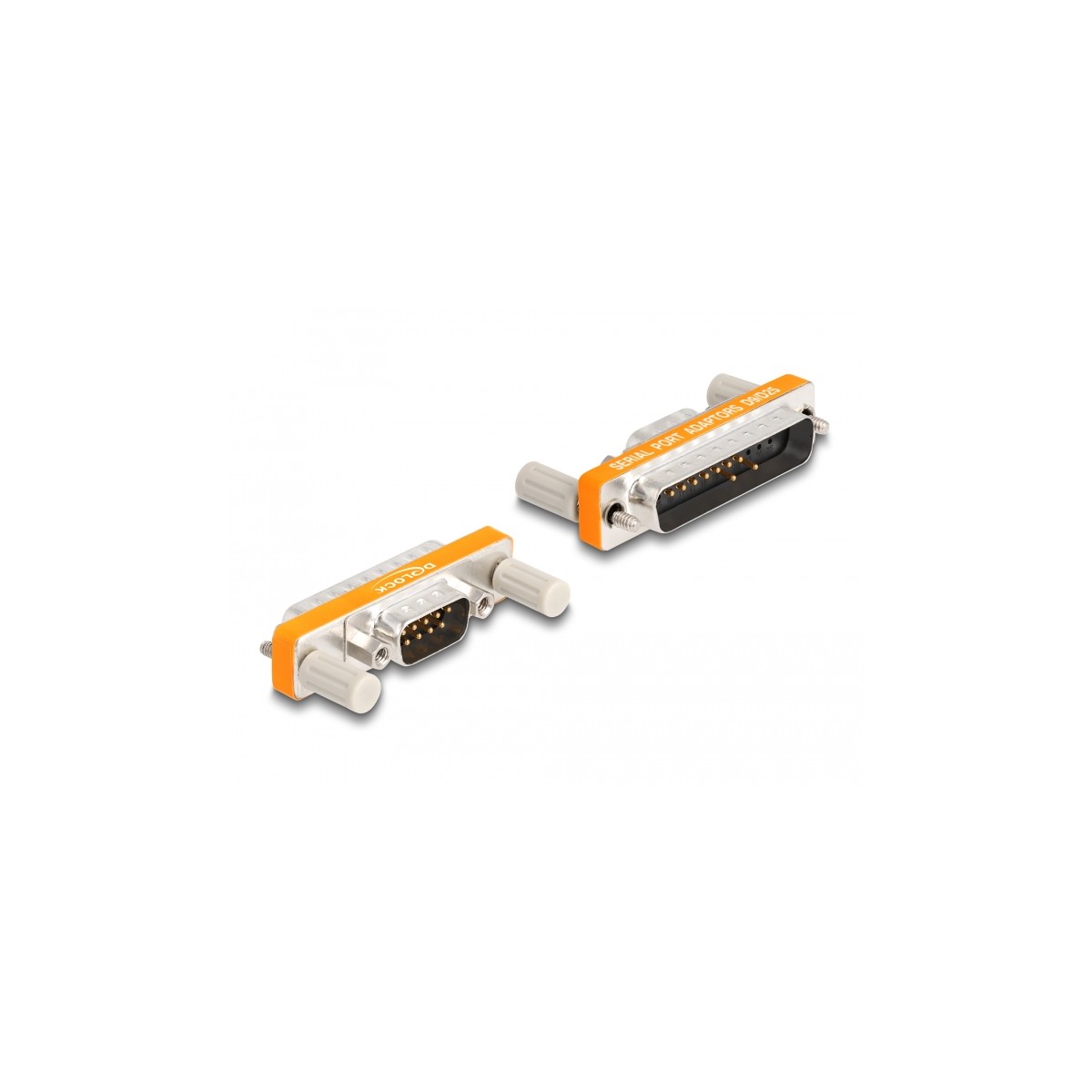 This narrow adapter by Delock can, for example, connect devices such as printers, modems and computers with serial RS-232 D-Sub 9 or D-Sub 25 interfaces.