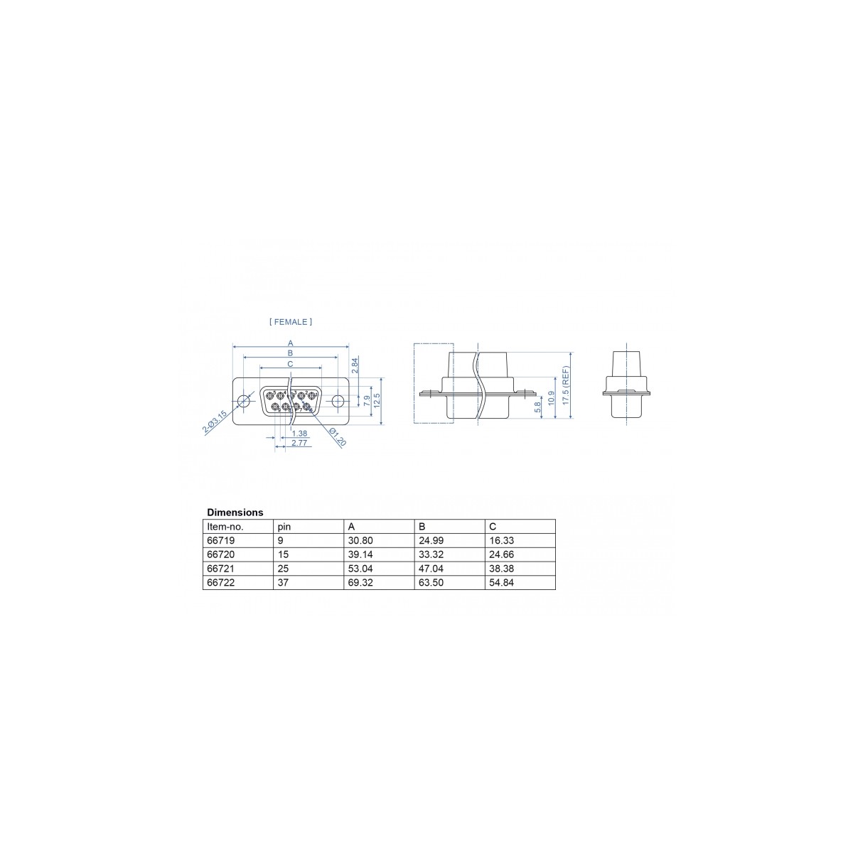 9 x through hole for crimp contacts
