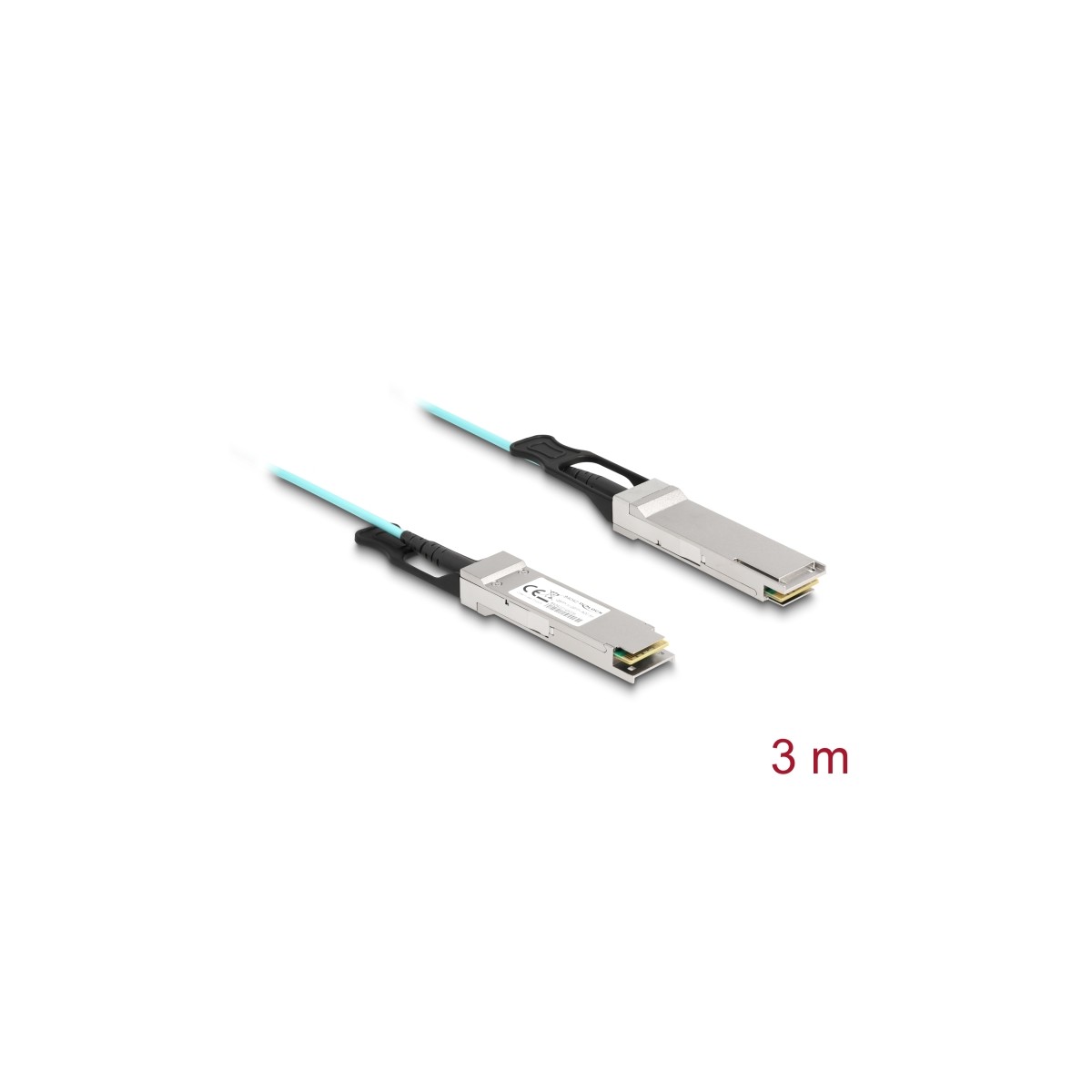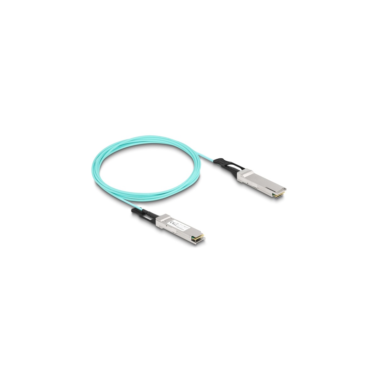 This active optical cable by Delock is used to connect devices to a switch with a QSFP+ port or to connect two Ethernet switches.