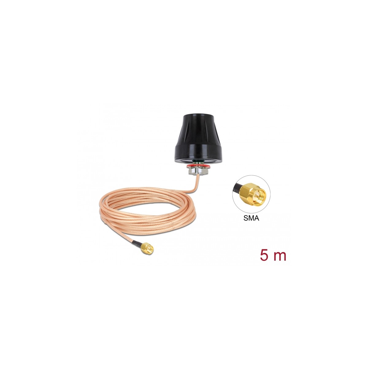 Delock LTE Antenna SMA plug 2 dBi fixed omnidirectional with connection cable (RG-316U 5 m) outdoor black
