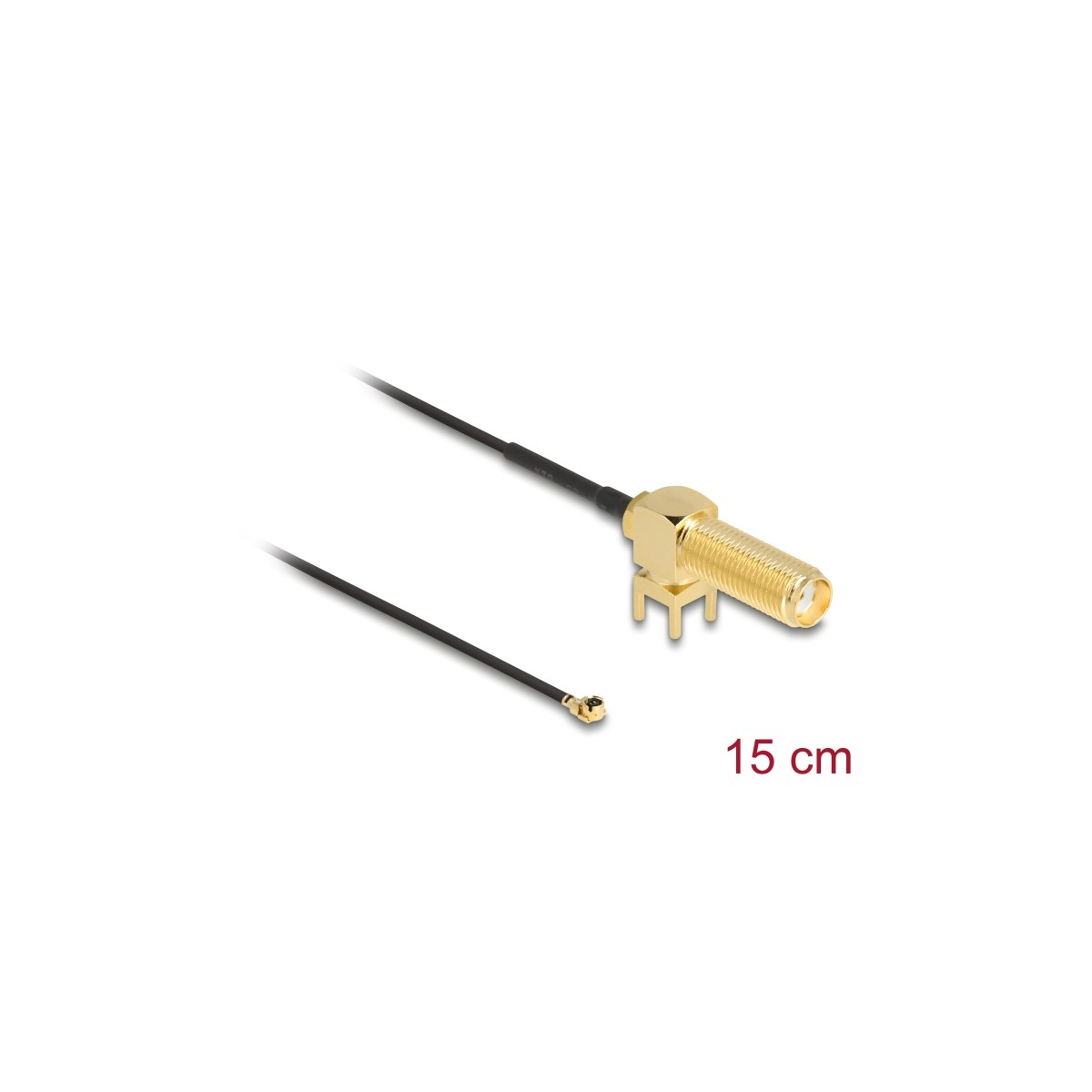 Delock Antenna Cable SMA 90° PCB jack bulkhead to I-PEX Inc., MHF® I plug 1.13 15 cm thread length 15 mm