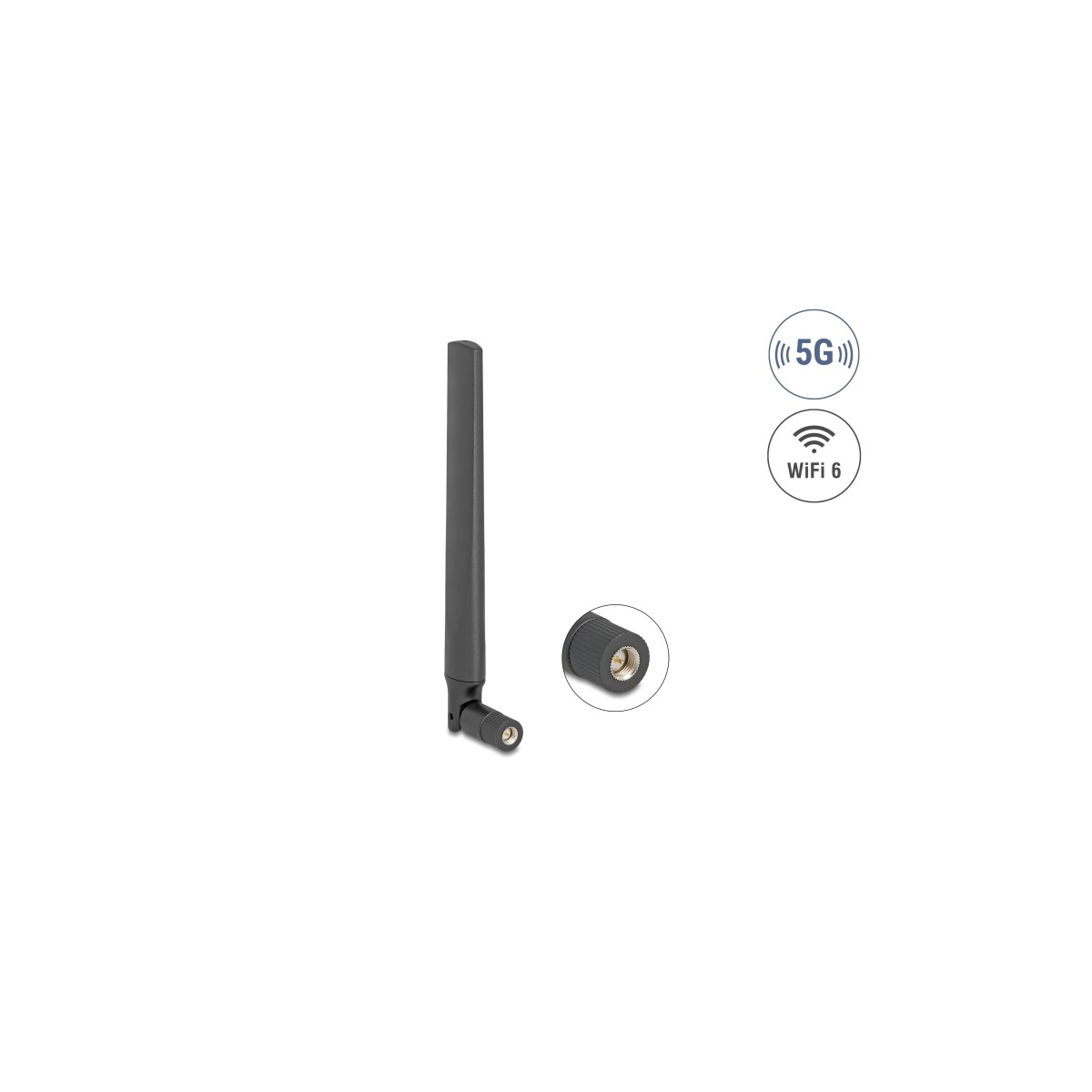 Delock 5G LTE GNSS WiFi 6 Antenna SMA plug 0.9 - 4.1 dBi 183 mm omnidirectional with tilt joint black
