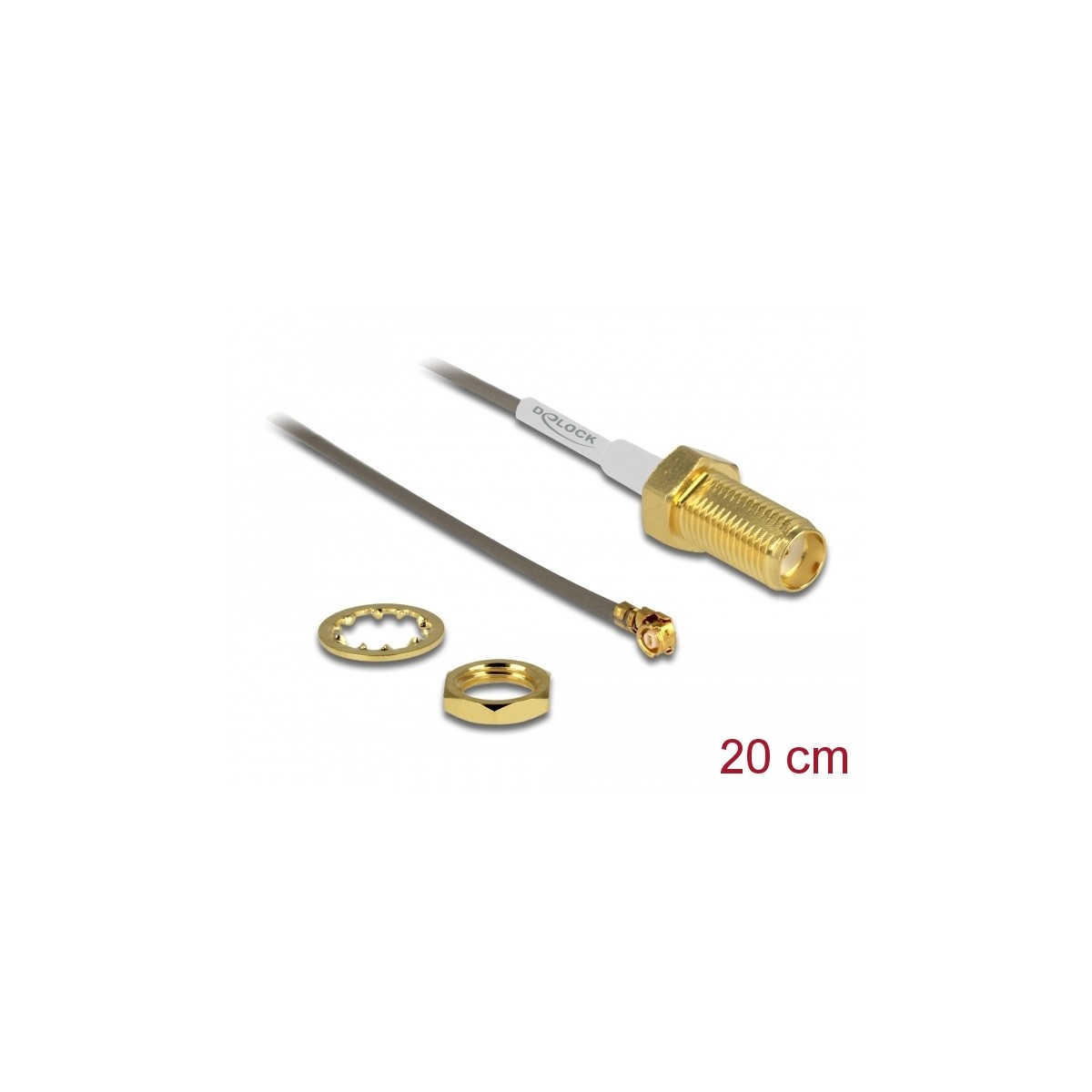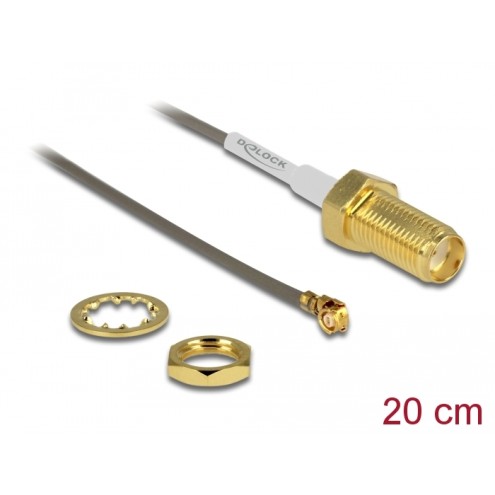 Delock Antenna Cable SMA jack bulkhead to I-PEX Inc., MHF® I plug 1.37 20 cm thread length 10 mm