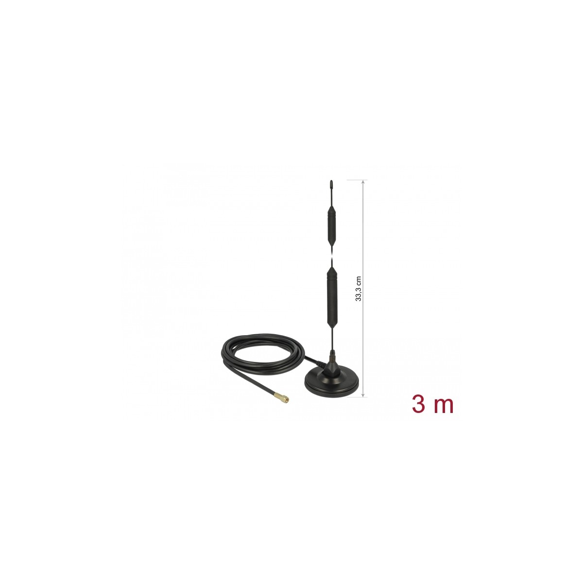 Delock GSM Antenna quadband SMA plug 5 dBi fixed omnidirectional with magnetic base and connection cable RG-58 3 m outdoor black