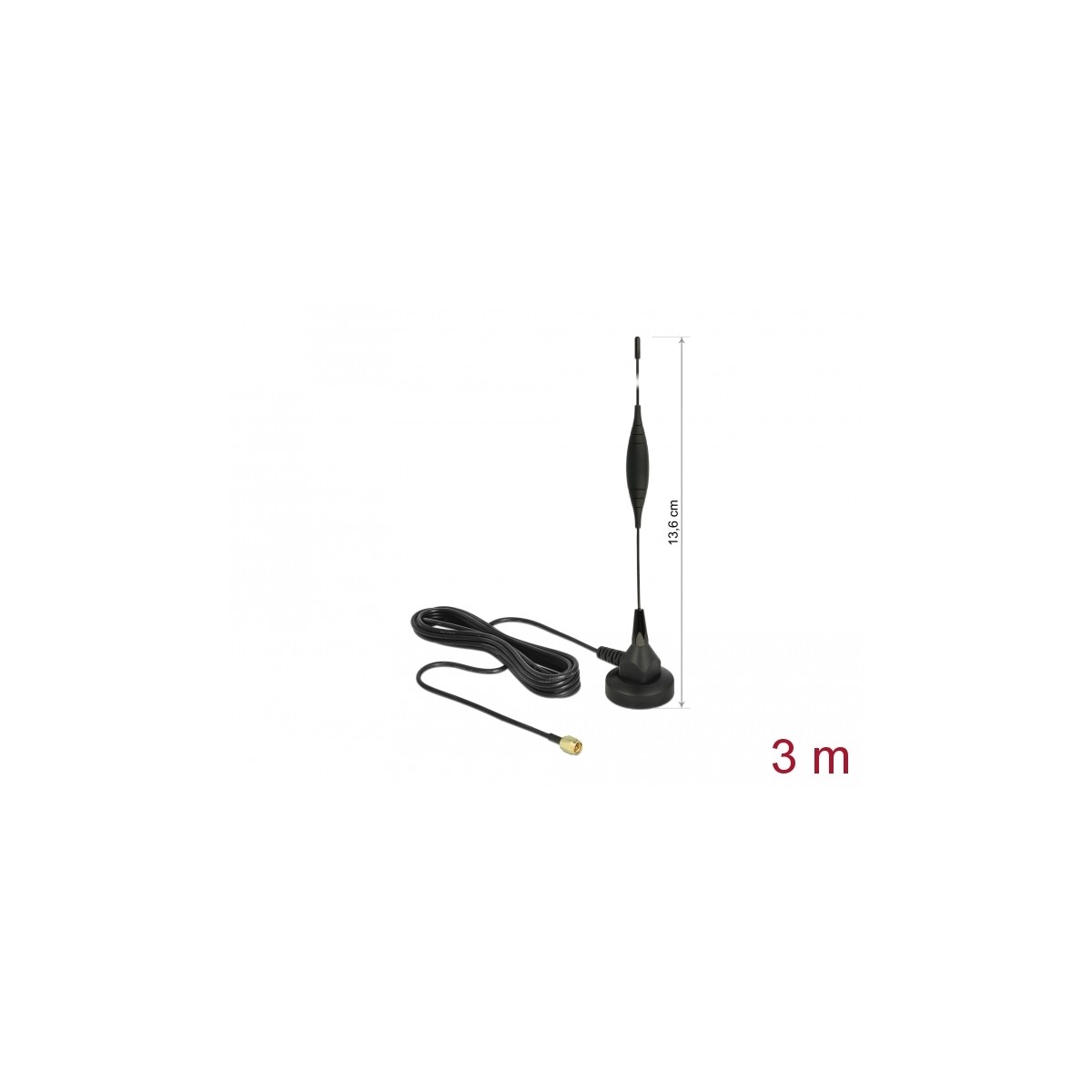 Delock GSM Antenna SMA plug 5 dBi fixed omnidirectional with magnetic base and connection cable RG-174 3 m outdoor black