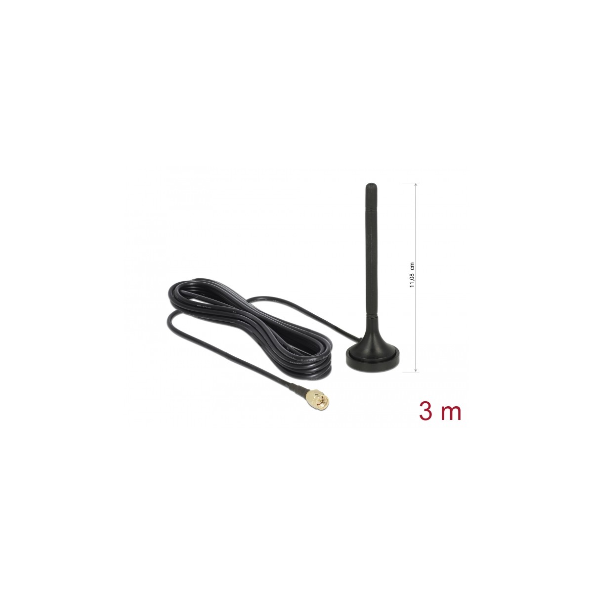 Delock LTE Antenna SMA plug 2 dBi fixed omnidirectional with magnetic base and connection cable RG-174 3 m outdoor black