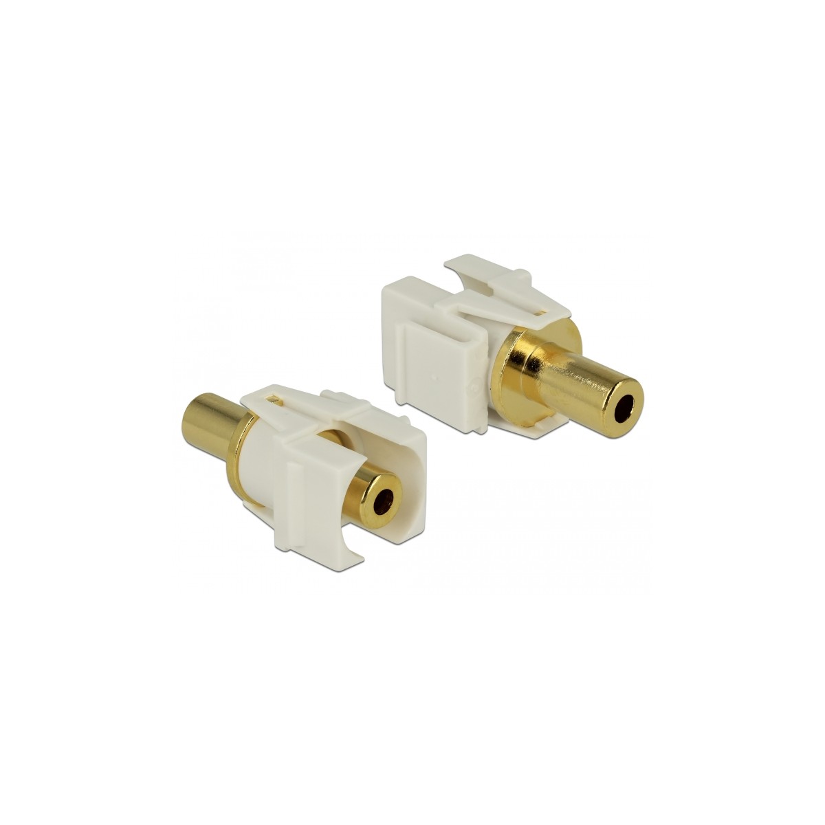 This module by Delock can be used to extend e. g. a stereo cable. With its standardised dimensions it can be used for easy snap-in mounting in e. g. a Keystone patchpanel, face plate or surface-mount box.