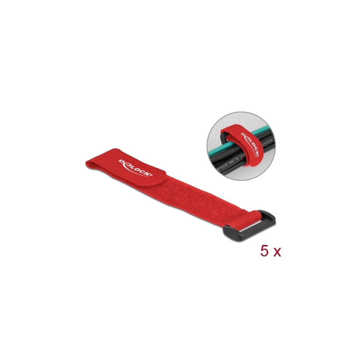 Delock Hook-and-loop cable tie with loop L 190 x W 25 mm red 5 pieces