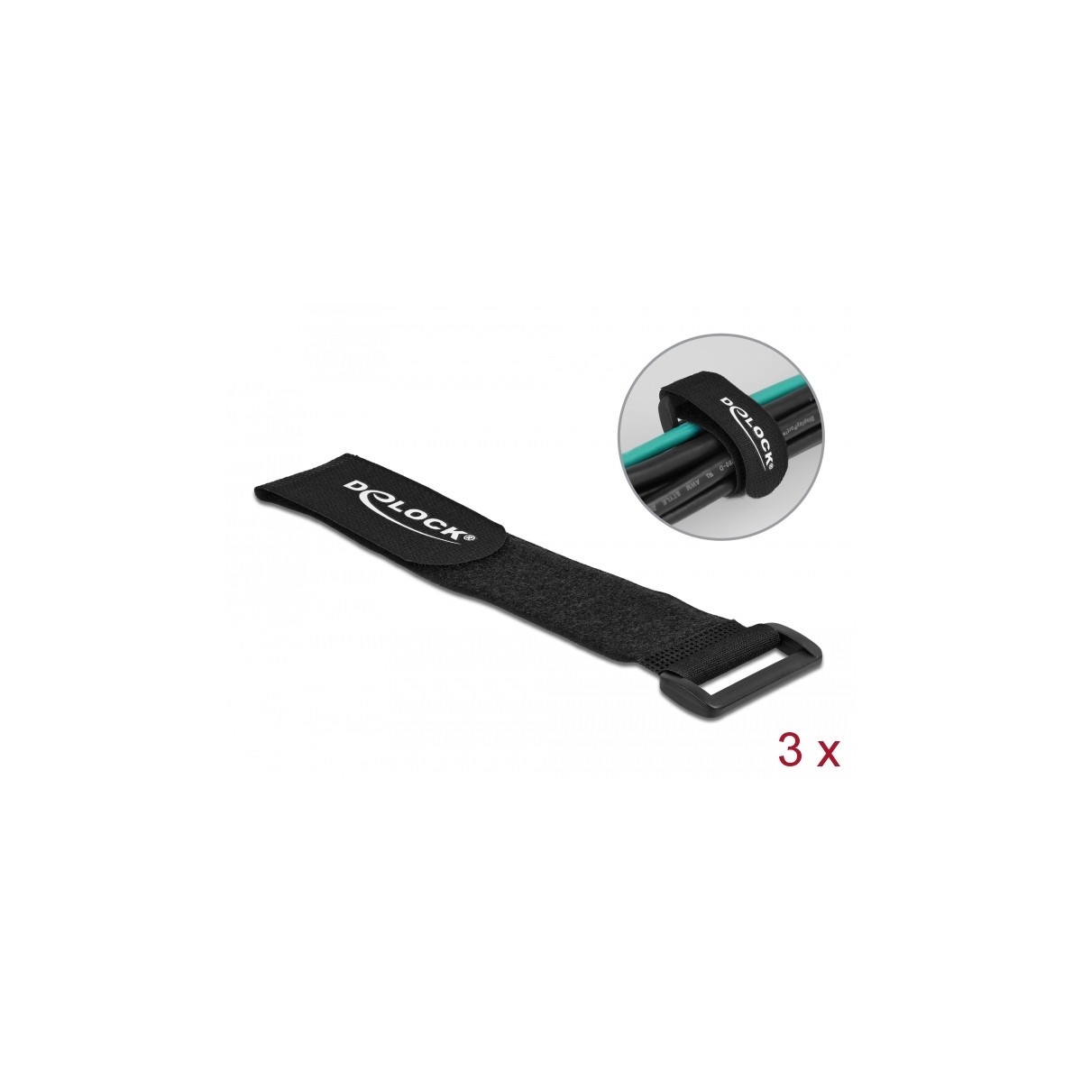 Delock Hook-and-loop cable tie with loop L 280 x W 38 mm black 3 pieces