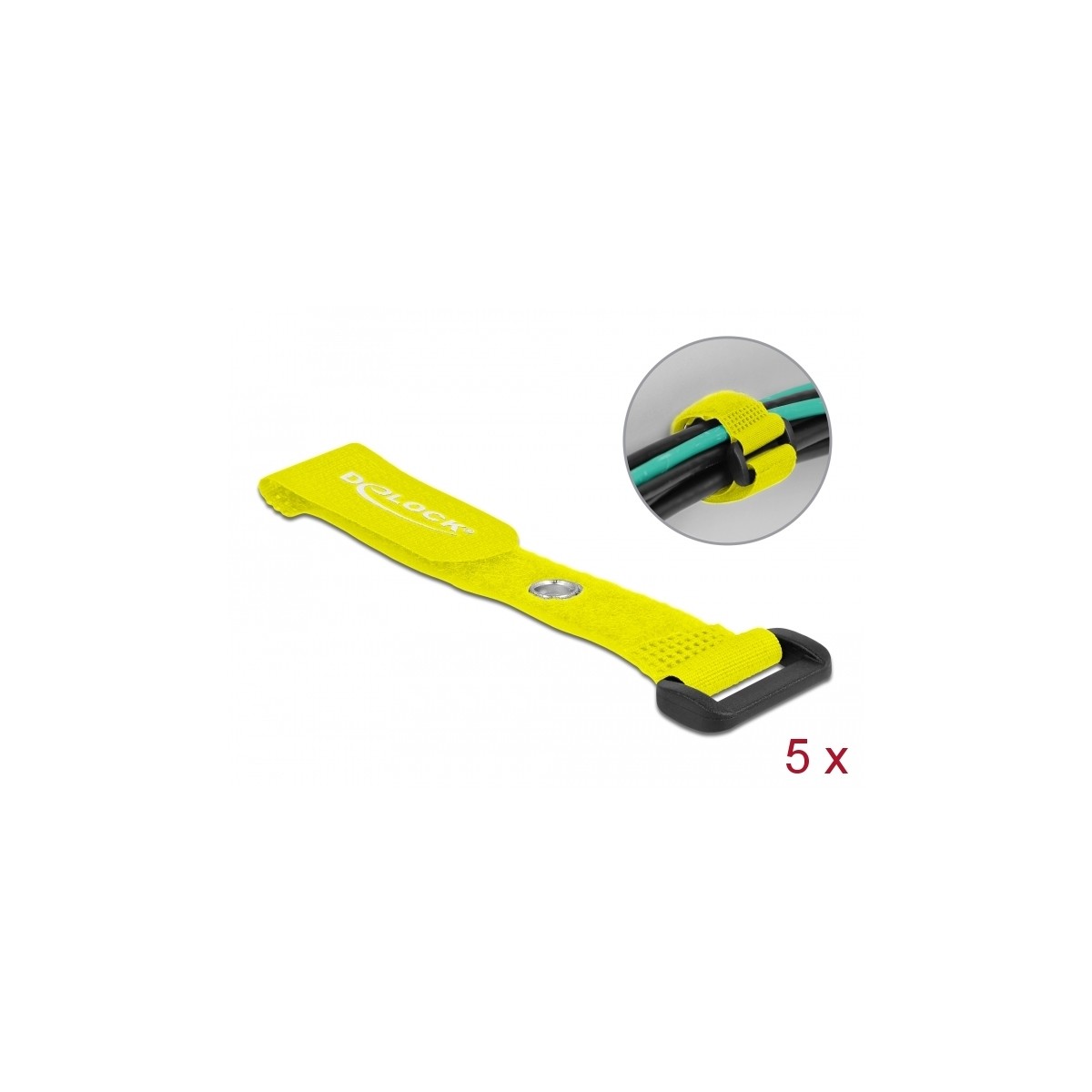 Delock Hook-and-loop cable tie with Loop and Fastening Eyelet L 150 x W 20 mm yellow 5 pieces