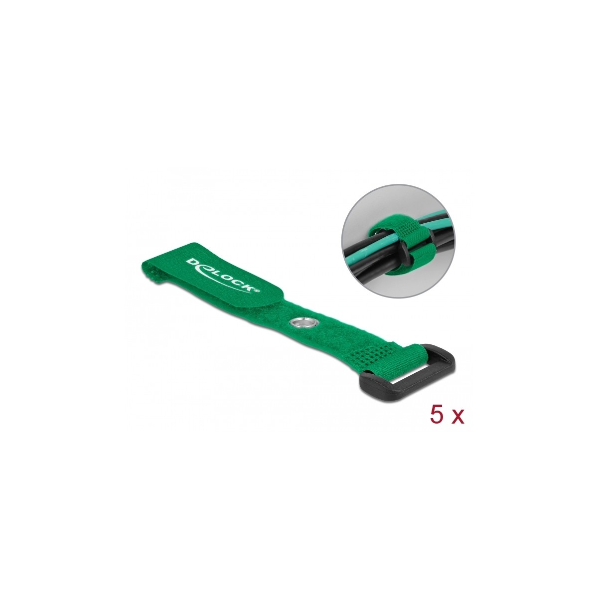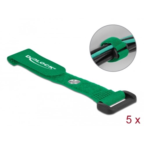 Delock Hook-and-loop cable tie with Loop and Fastening Eyelet L 150 x W 20 mm green 5 pieces