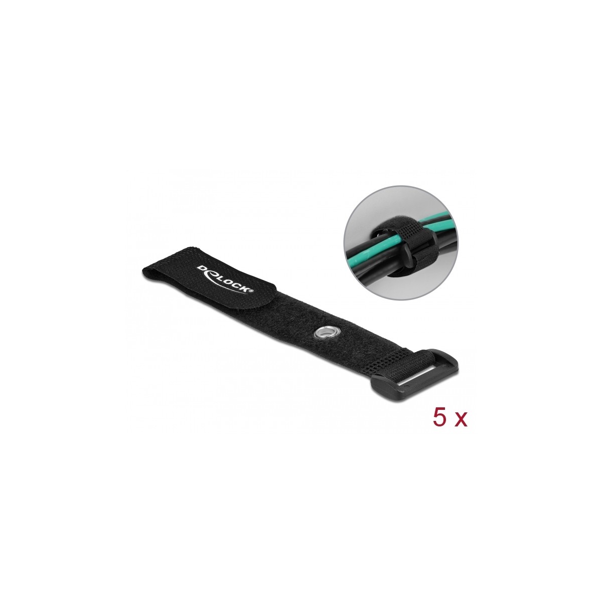 Delock Hook-and-loop cable tie with Loop and Fastening Eyelet L 190 x W 25 mm black 5 pieces