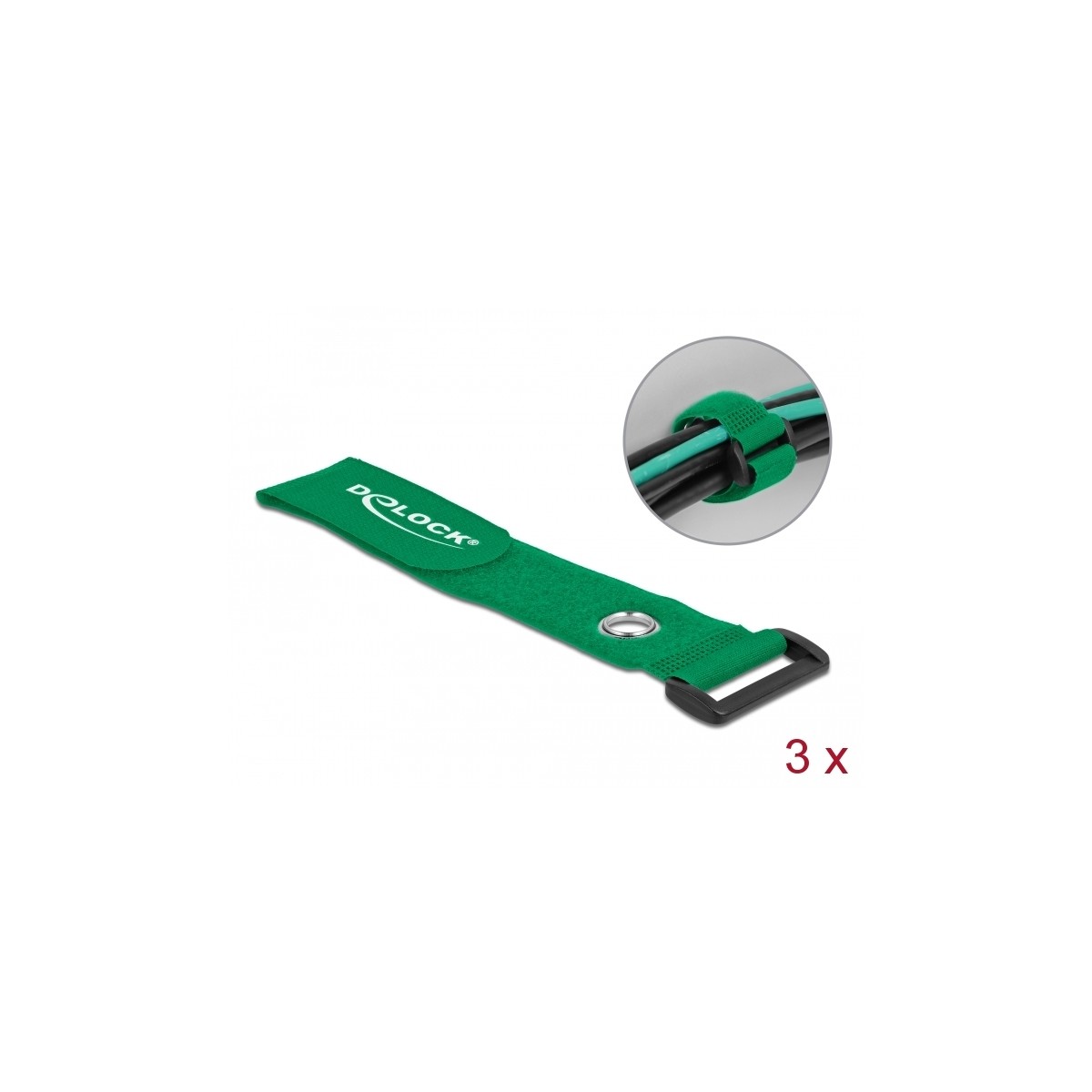 Delock Hook-and-loop cable tie with Loop and Fastening Eyelet L 280 x W 38 mm green 3 pieces