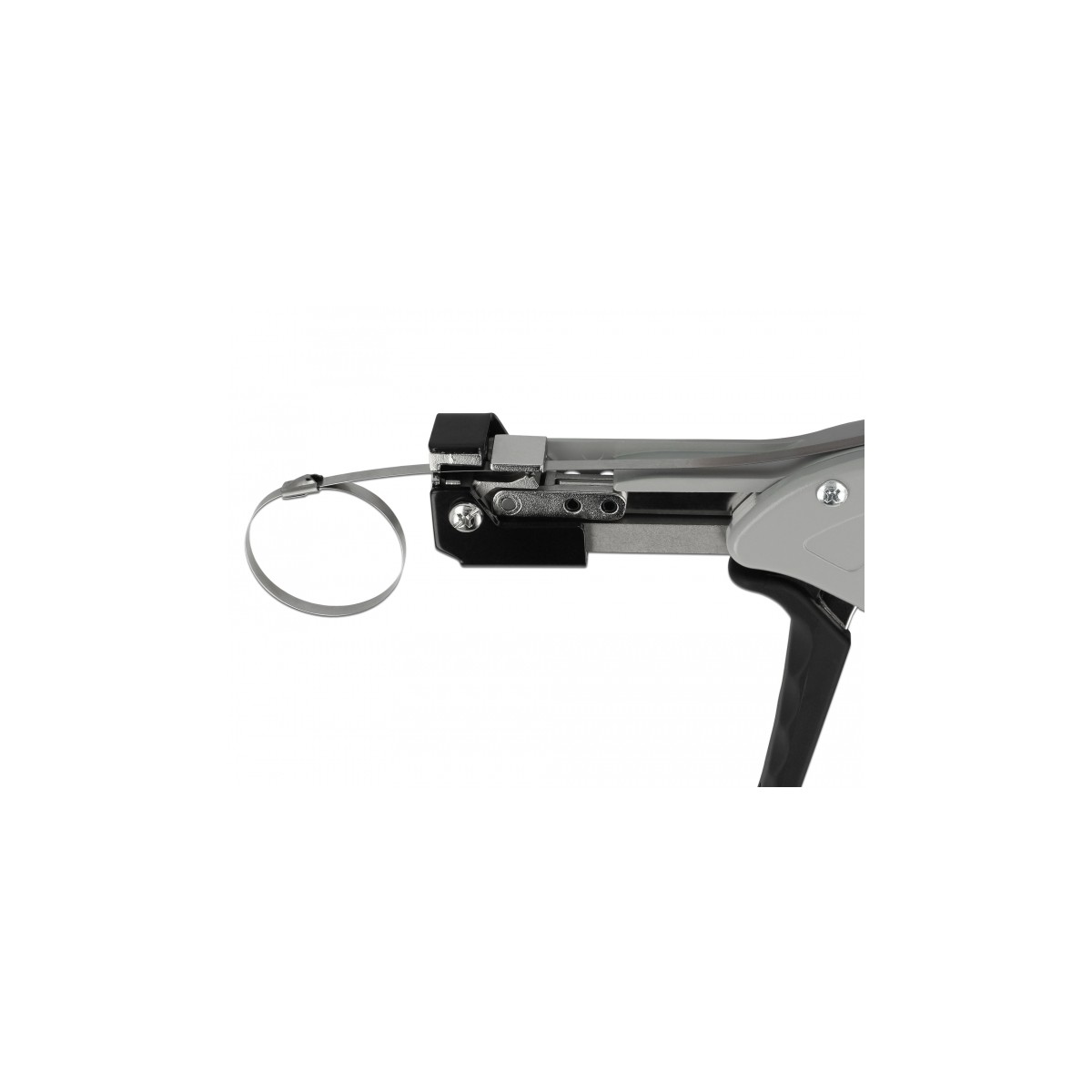 This installation tool by Delock enables to tighten and cut stainless steel cable ties with a width of 4.6 to 7.9 mm in one step.