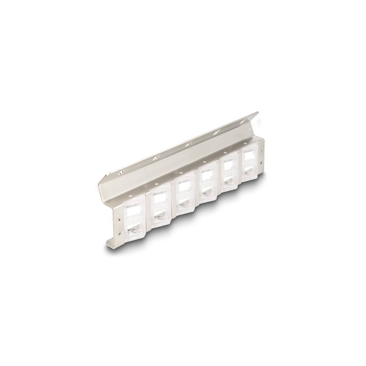 This Keystone holder by Delock can be mounted into a 10″ or 19″ rack to the side. With its standardized dimensions, it is suitable for easy snap-in mounting of 12 Keystone modules.