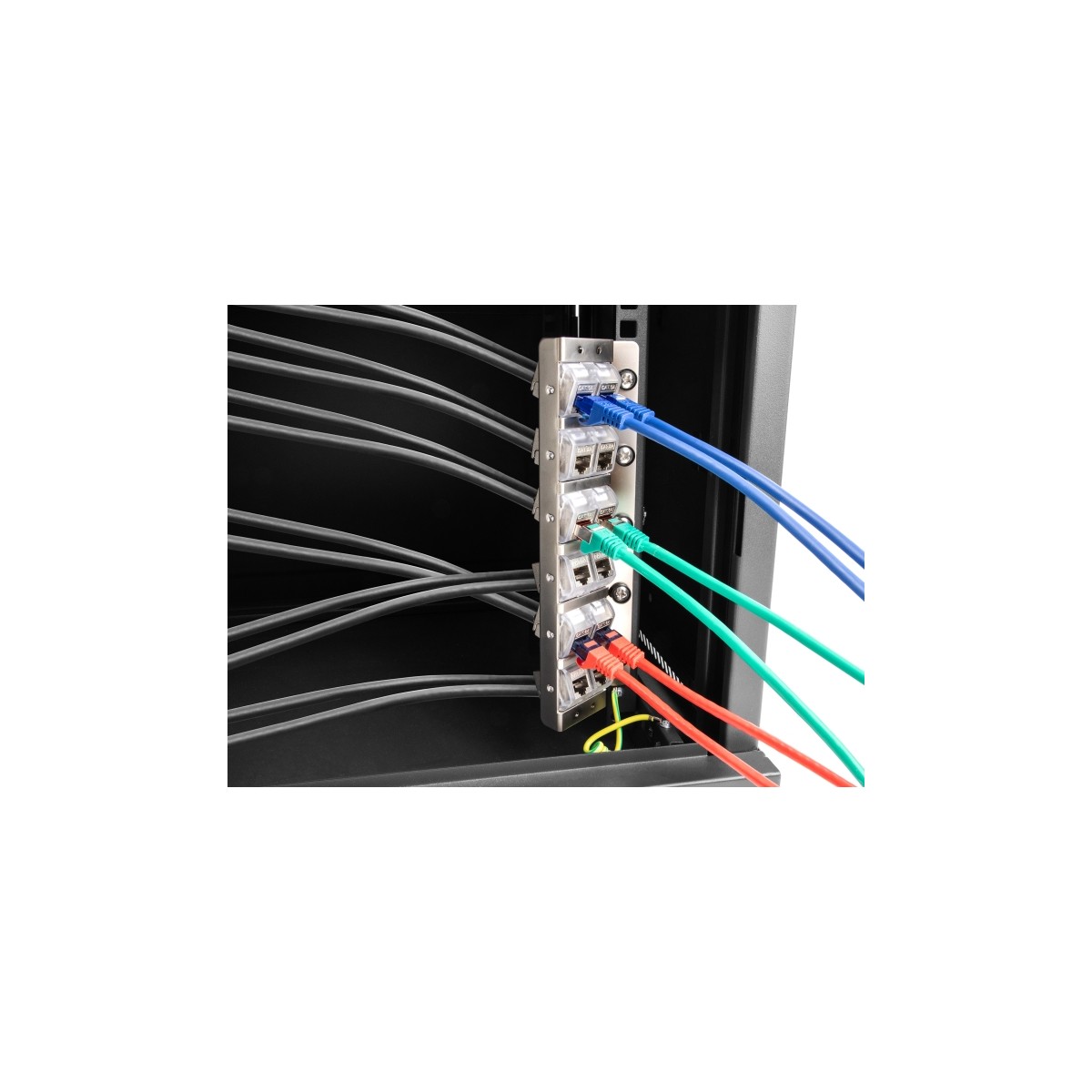 The tiltable Keystone ports allow for an angled and space saving installation of cables.