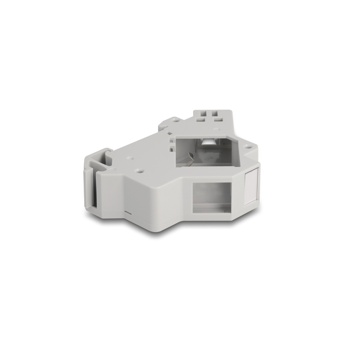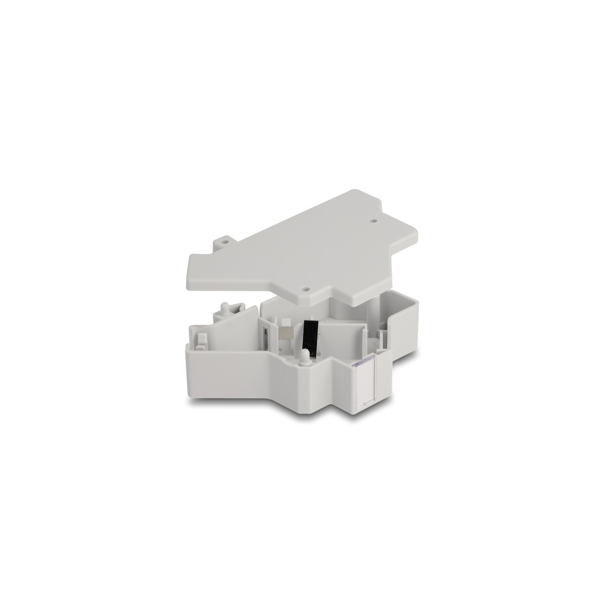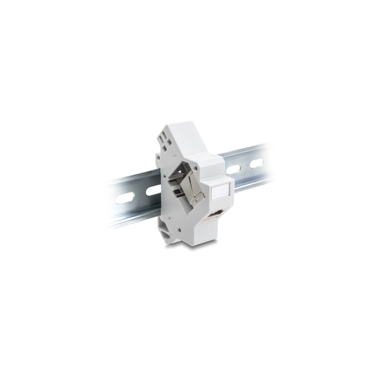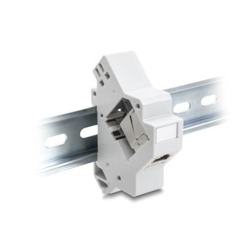 This Keystone holder by Delock can be mounted on a 35 mm DIN rail. With its standardized dimensions, it is suitable for easy snap-in mounting of one Keystone module.