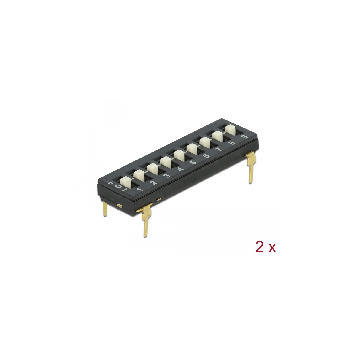 Delock DIP switch Tri-State 9-digit 2.54 mm pitch THT vertical black 2 pieces